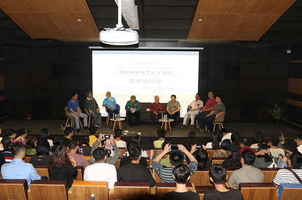 在随后举行的学术研讨会上,景德镇陶瓷大学周国桢教授、中国工艺美术大师熊钢如、唐自强,文化部中国文化传媒集团艺术品评估委员会上海工作站主任、国家艺术基金评委陈海波、中国陶瓷设计艺术大师夏忠勇、景德镇陶瓷大学设计学院院长邹晓松、江西陶瓷工艺美术职业技术学院粉古彩研究院院长朱辉球、景德镇市文联副调研员汪同茂等专家学者,就粉彩与墨彩的艺术表现和特种、墨彩瓷制瓷技艺人才培养、传统墨彩与当代墨彩的异同、墨彩瓷的发展与创新等问题进行了深入研讨,并对参加“墨彩制瓷技艺人才培养”高级研修班的50名学员和学院参加研讨会的陶瓷设计与工艺专业的学生代表在陶瓷文化传承和创新、墨彩瓷制瓷技艺传承和发展、工匠精神的培育和践行等方面给予宝贵的建议,让大家深受启发和思考。