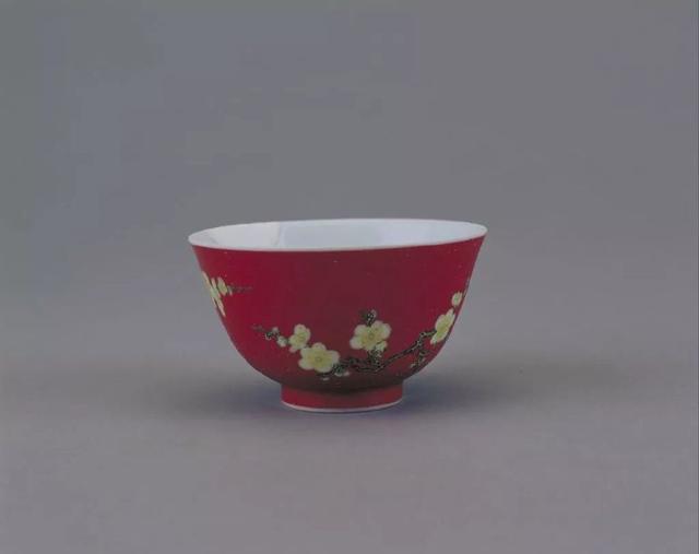 紫红地白梅珐琅彩小盅
