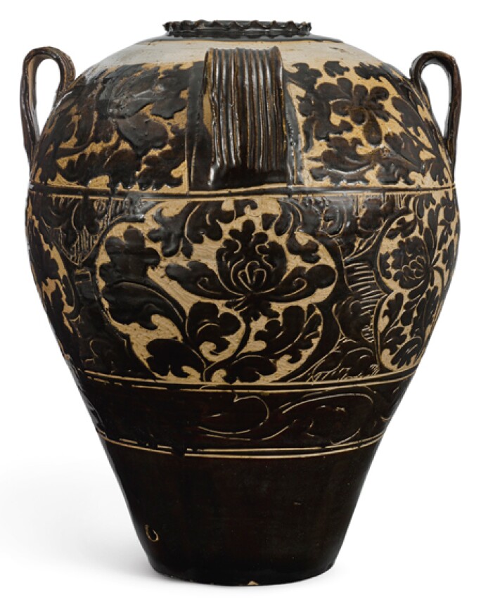 AN EXTREMELY LARGE AND IMPORTANT 'LINGWU' CUT-GLAZE WINE JAR, XIXIA DYNASTY. ESTIMATE $120,000 – 150,000.