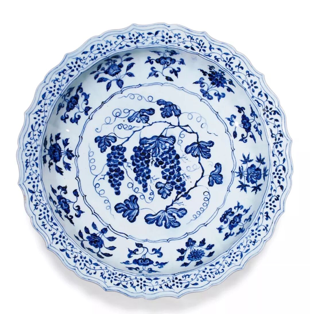 TOP8: Ming Yongle Blue-and-white Ceremony Grape Folding Branch Flower Lingkou Folding Large Plate Lot Size: 45cm in Diameter Price: 19,550,000 RMB Auction Company: Beijing Poly Auction Date: 2019-06-05 Auction Special: Beijing Poly 2019 Spring Auction Yugong I— -Daming Gegu