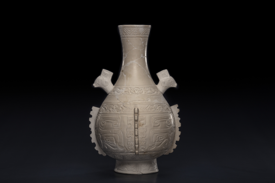 汝窑素烧仿青铜器出戟瓶,2015年在清凉寺汝官窑遗址IV区出土,时代:宋。现收藏于宝丰汝窑博物馆,属国家一级文物。