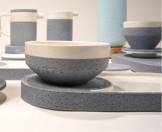 作品简介:材料的突破给创作带来更多的可能性。熔岩系系列器皿是通过回收陶瓷废料重新配制出的发泡陶瓷材料制作而成的。发泡陶瓷具有极佳的透光性,而且重量轻,密封气泡具有很好的隔热性能,可用于灯具、日用器皿和墙面装饰的制作。