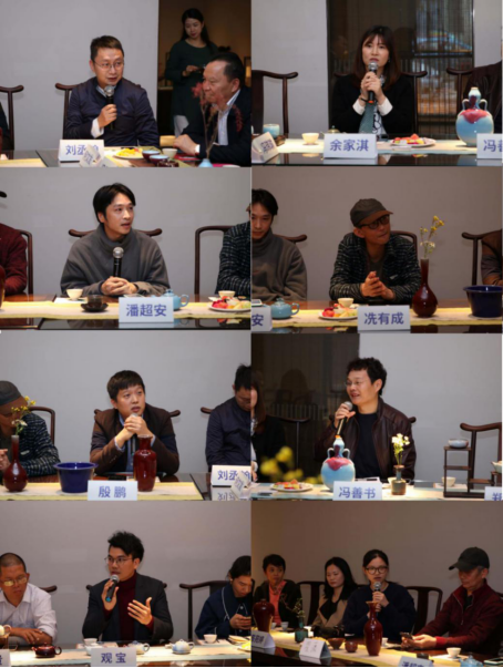 与会专家踊跃发言:璞睿品牌创始人兼首席设计师刘丞翰,光大银行私人银行部总经理余家淇,广东省工艺美术大师潘超安,高级工艺美术师、广东省工艺美术大师冼有成,广东崇正拍卖有限公司古器物部总经理殷鹏,艺术品市场评论员、财经专栏作家冯善书,跨界艺术家、策展人、观空间创始人观宝,茶行业内容输出者陈苑婷