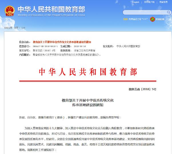 不仅如此,教育部还将对认定的中华优秀传统文化传承基地予以经费、课题、平台、政策上的支持。
