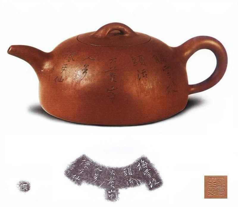 此壶形态从容,蕴含天机,其砂质最为细腻,故表面光滑圆润,铭文寓意深奥,其造型工艺,文化内涵均达到紫砂壶之最佳境界。