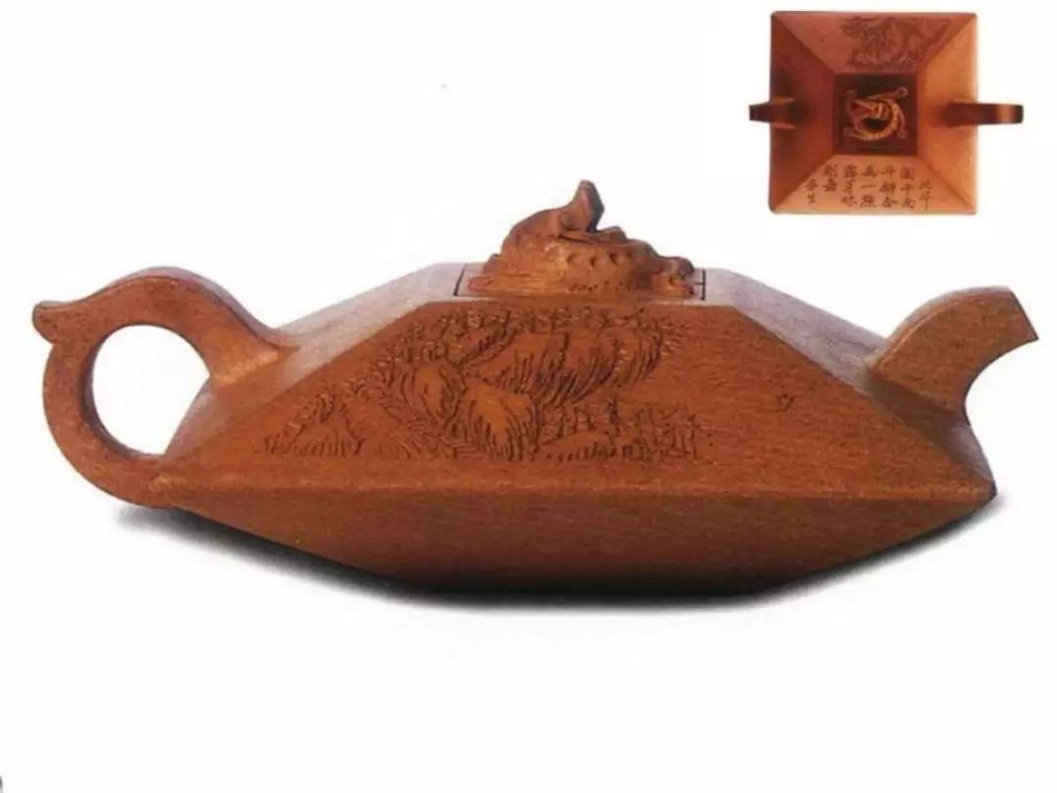 此壶棱角分明,方正可鉴,四平八稳,告诫世人为人处事须刚正方直,智欲圆而行欲方,乃智慧之壶,为曼生壶传世茗壶中唯一之方壶