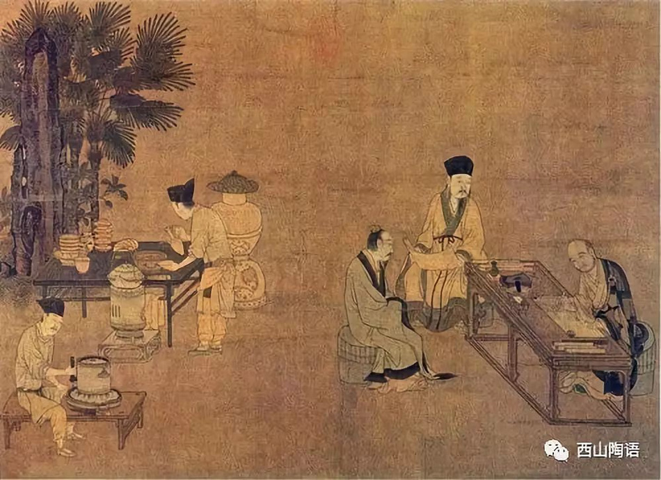 宋徽宗赵佶对茶极其痴迷,著有《大观茶论》,在《大观茶论》中,详细品鉴了茶和茶器,还介绍了茶的冲点方法。现藏于台北故宫博物院的《文会图》,是否出自宋徽宗的亲笔,虽然目前尚无定论,但的确是凝结宋徽宗茶美学的宫廷画院作品。[1]