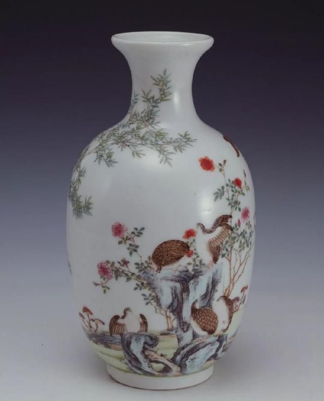 珐琅彩竹菊鹌鹑图瓶