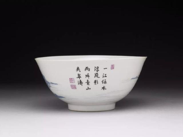 珐琅彩瓷青山水碗