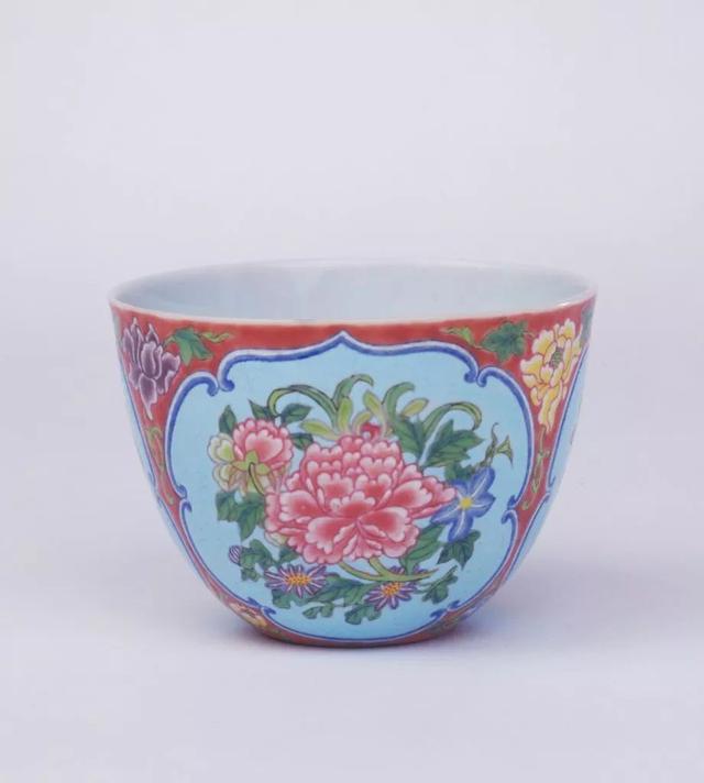 红地开光珐琅彩牡丹纹杯