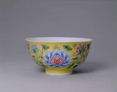 黄地珐琅彩缠枝牡丹纹碗