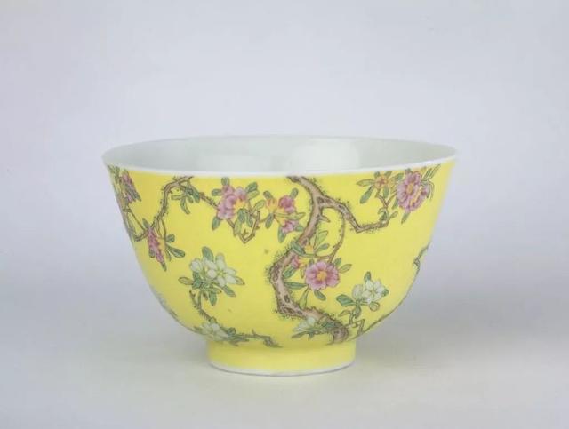 黄地珐琅彩桃花纹杯