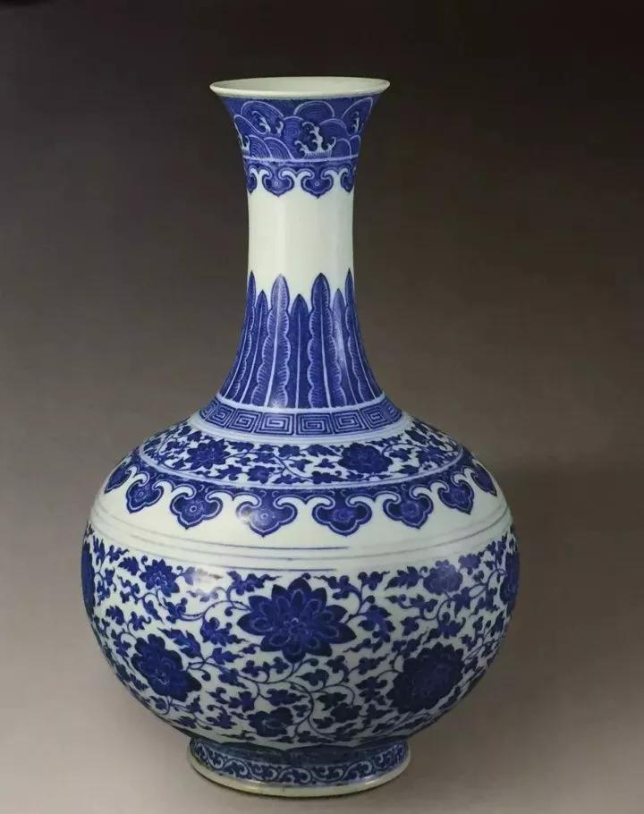 赏瓶:顾名思义就是皇帝赏给有功大臣的。这种赏瓶,画的是缠枝莲,表示清廉。皇上用青花和莲花的赏瓶赏赐,暗示“为官要清廉”。赏瓶本来有一个名字,叫“玉堂春瓶”。过去皇帝传旨:“赏玉堂春瓶一对。”底下太监当着皇帝会把话说全:“传旨,赏玉堂春瓶一对。”一转身就说:“赏瓶一对。”说得简单了,把中间省去了,所以,渐渐的,后来这瓶就叫“赏瓶”,原来的本名“玉堂春”反而不叫了。