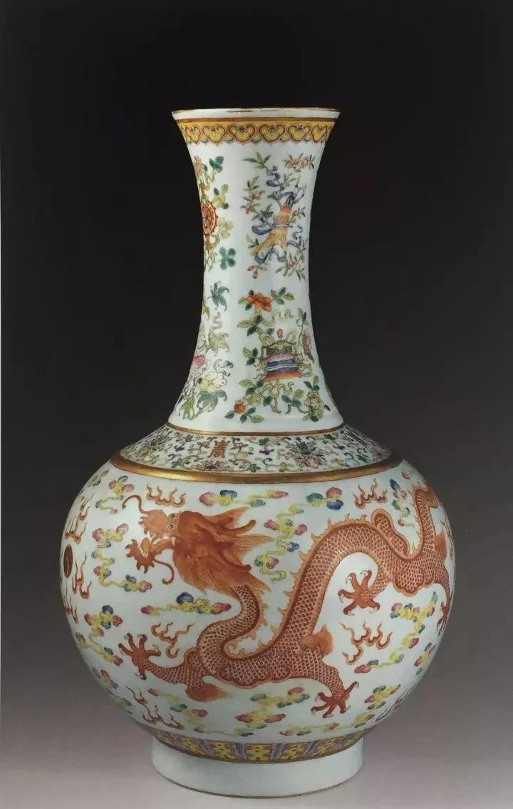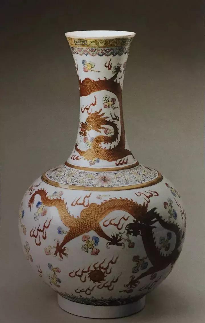 清光绪祭蓝釉金彩双龙戏珠纹赏瓶