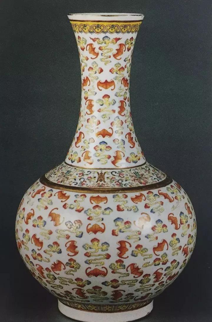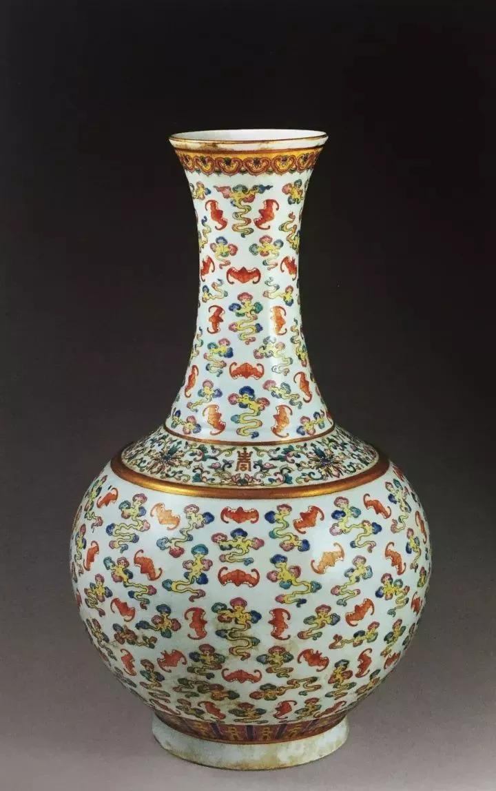 清光绪祭蓝釉粉彩桃蝠纹赏瓶