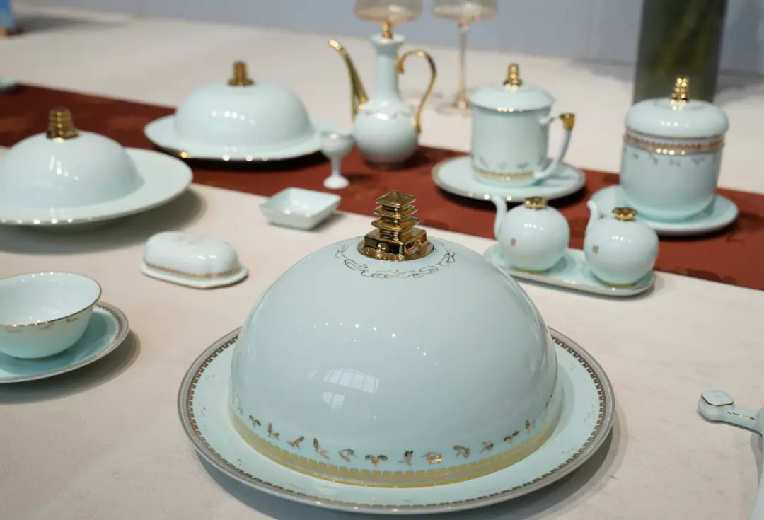 马晓磊书记一行对华光国瓷的国宴用瓷、华光·瑛藏中国的奢华系列产品赞不绝口。