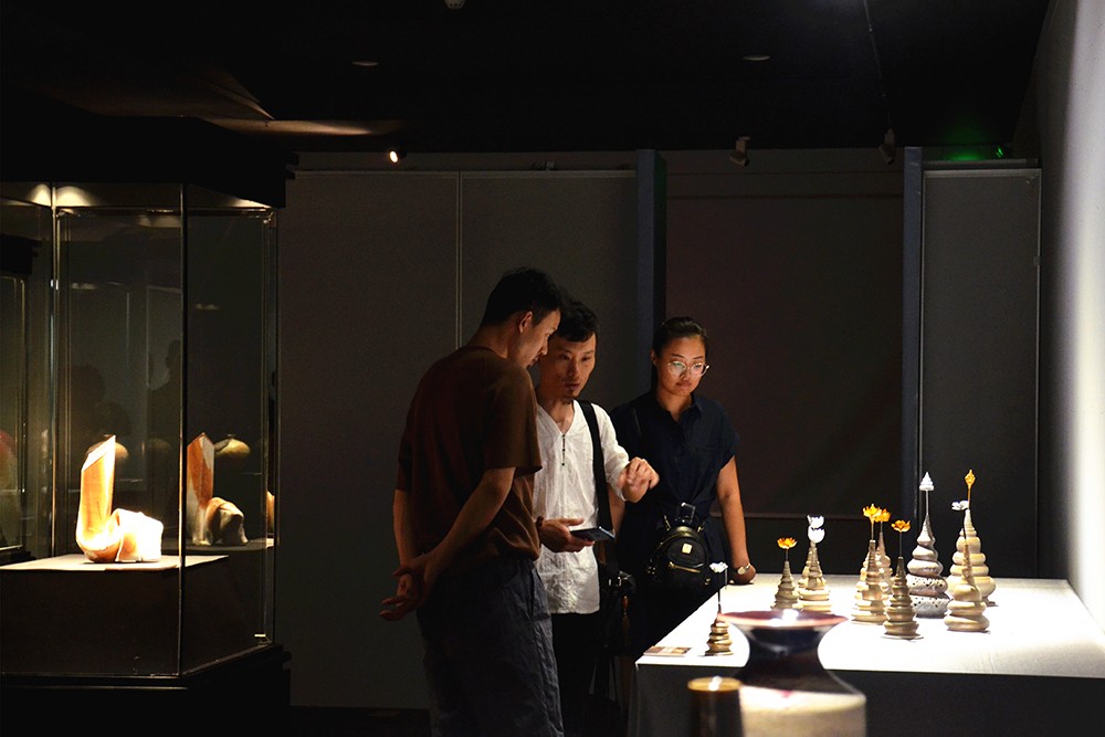 开幕式结束后,嘉宾艺术家及各界朋友在展馆内进行参观。此次作品展展示了20名优秀柴烧艺术家基于对柴烧技艺的理解所创作的50余件创新作品。