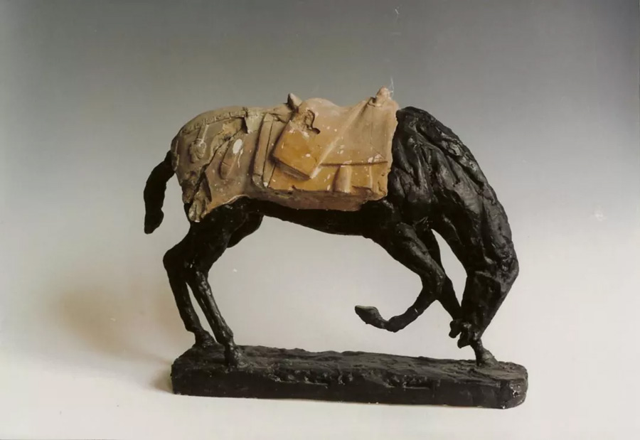 关于“复原”系列作品,邱耿钰老师说:“传统雕塑大都追求造型样式和表面处理的完整,而在我的创作过程中,则有意保留明显的泥触和塑造过程的痕迹,使作品有一种未完成的效果。当作品上有人物出现时,往往有意淡化人物的性别特征,以便留给人更大的想象空间,使作品具有一种超现实的意味。马和人物的造型或静止或跃动,但都尽可能舍弃不必要的细节,运用夸张的手法,使造型简练、概括以至于抽象,以求表现出整体的气势和意境,这种看似求同实则求异的做法,最终是想体现一种观念上的差异和超越。”