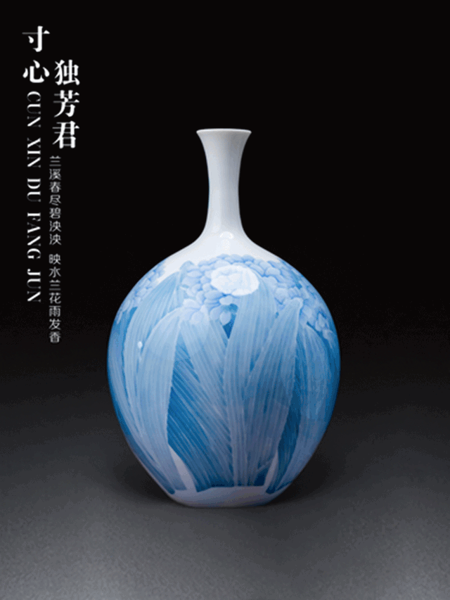 该作品将传统题材“松”与“鹤”凌驾于现代表现手法之上,采用高温釉下彩装饰而成,色调所呈现出的层次感与空间感在宽荧幕全景式的构图之下,形成了一个美的较高境界:百木之长,长青不朽,千年羽鹤,福寿延绵,松鹤相伴,浮云相依,汉光白瓷,淡雅之至!