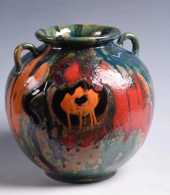 伍延文的的陶塑作品主要载体是石湾陶胎,而其施画的媒介是石湾传统釉色,经过高温烧制后,会呈现出风情万千、光彩陆离、耀人眼目的美感体验。伍延文的此批釉色陶器瑰丽多姿、五色缤纷,其晕化变幻莫测,比宣纸上的色彩更为富丽堂皇而细腻微妙。