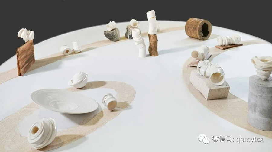 以“秩序”为议题,组合为形式,探索陶瓷艺术在审美上的可能性。“秩序”既呈现着作品本身的样貌,又蕴含了某种宇宙观,看似变动不居、混沌无序,却又有着某种内在秩序——相互渗透、联结的协调状态。