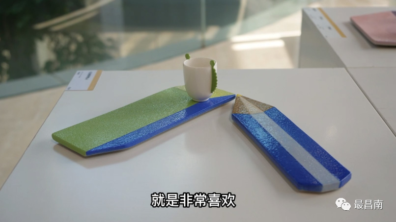 吴承澈是赵兰涛老师的硕士研究生,在景德镇陶瓷大学读完三年的过程当中,其实的他的艺术创作力就非常强,曾经就获得很多展览的奖项。他的作品最重要就是给我们的感觉,我的第一感觉就是他的作品,就是非常具有童趣。因为我们能看到的虽然是几何形,因为我们非常喜欢的在这个,几何形上面有非常多的色彩,而且这个色彩的运用也是让我们非常富有童真的这种色彩的变化。今天让我更加耳目一新的就是里边的那些日用器皿的创作,里面的日用器皿就更多了一些更有趣的东西。比如说像苹果杯,像一些小器皿上面的一些小耳饰,它的设计色彩也好。包括它的材质也好的温润度,还有色彩的这种取舍,都会让我们耳目一新,让我们心生童趣。我看到这些色彩的时候,我的内心就非常的开心,就是非常喜欢。我相信他的作品可以跟给更多人带来这种感受。