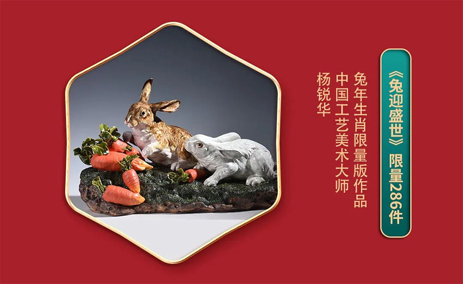 明善文创《兔气扬眉一一兔年陶艺生肖展》,明善商城上架杨锐华、杨伟东兔年生肖作品