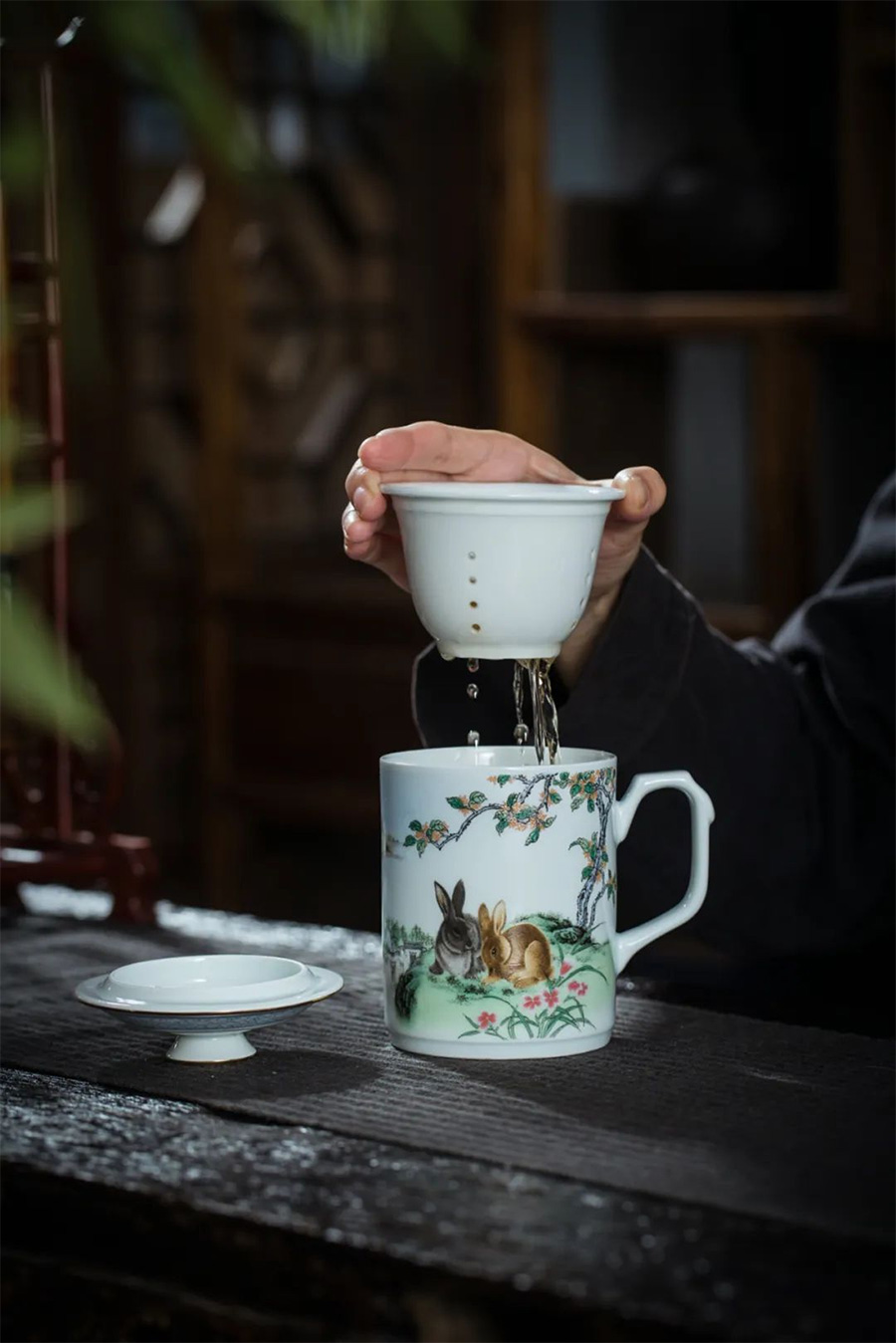 此款茶杯以景德镇的高白泥为原材料,将景德镇独特的鎏金、青花、粉彩、雕刻半刀泥、颜色釉等五大工艺集于一身:
