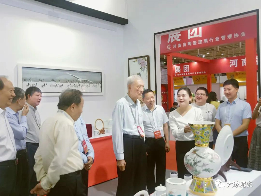 5月29日,参加南京第三届中国工艺美术博览会的原国家轻工业部副部长、中国轻工业联合会名誉会长陈士能,原国家劳动和社会保障部副部长步正发,中国轻工业联合会第五届理事会会长张崇和,中国轻工业联合会副会长杜同和等领导到大球泥瓷艺展台巡馆。