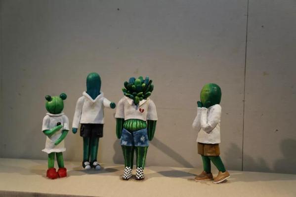《异》的灵感来源于《悲伤逆流成河》那部电影,里面的校园霸凌是引人深思的现象。那么在观影之后我开始关注这些新闻也有所感悟,也就以校园霸凌为主题创作了这组作品。为了凸显那种世间冷漠,我用仙人掌代表人的形式,表现当代社会人们对于周围不同人的排挤歧视,以及对世态的冷漠。反映当代校园霸凌、各种歧视的现象,用异样的眼光看待别人。绘制图稿的时候是很顺利的,但在制作过程中遇到不少问题,比如说泥巴干湿判断、人体形态的把握、细节的塑造,以及后期的烧制回来填补等问题老师都给我们进行了细致的指导。