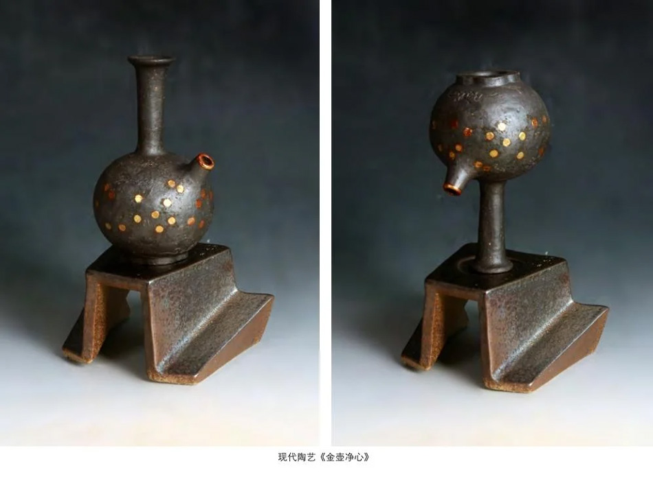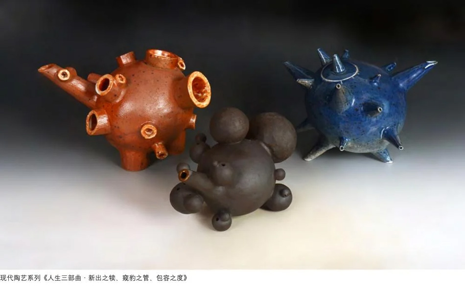 今天在这里展示的系列作品,既体现了她对优秀传统陶瓷艺术的传承,又体现了作者走出传统,探索当代陶瓷艺术新时代语言的表达。其作品《觅》《金壶净心》《和合》,形神兼备,创作精神游弋于传统与现代之间。作品《人生三部曲》《古宋四艺》,则更侧重于观念的表达与现代陶瓷艺术语言的探索。在小影的陶瓷艺术作品中,我们既看到她深扎在传统中的根,又看到了从中开出的欣欣向榮的当代之叶。