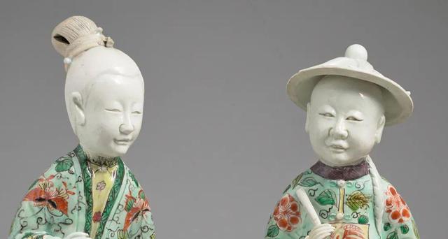 这对中国乐师像是典型的“中国风”瓷塑,男子的胡须,锥形或宝塔形的帽子、宽松的下装都是当时欧洲人眼中的“中国”特征。然而,人物袒露的着装,奔放的姿态,立体的五官,以及使用的乐器,都与当时中国人的实际形象相差甚远,是抽象的东方元素、具象的西方细节,加上想象构建而成的异域风情。