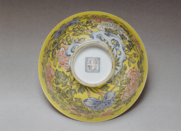 清 雍正 珐琅彩瓷黄地牡丹碗