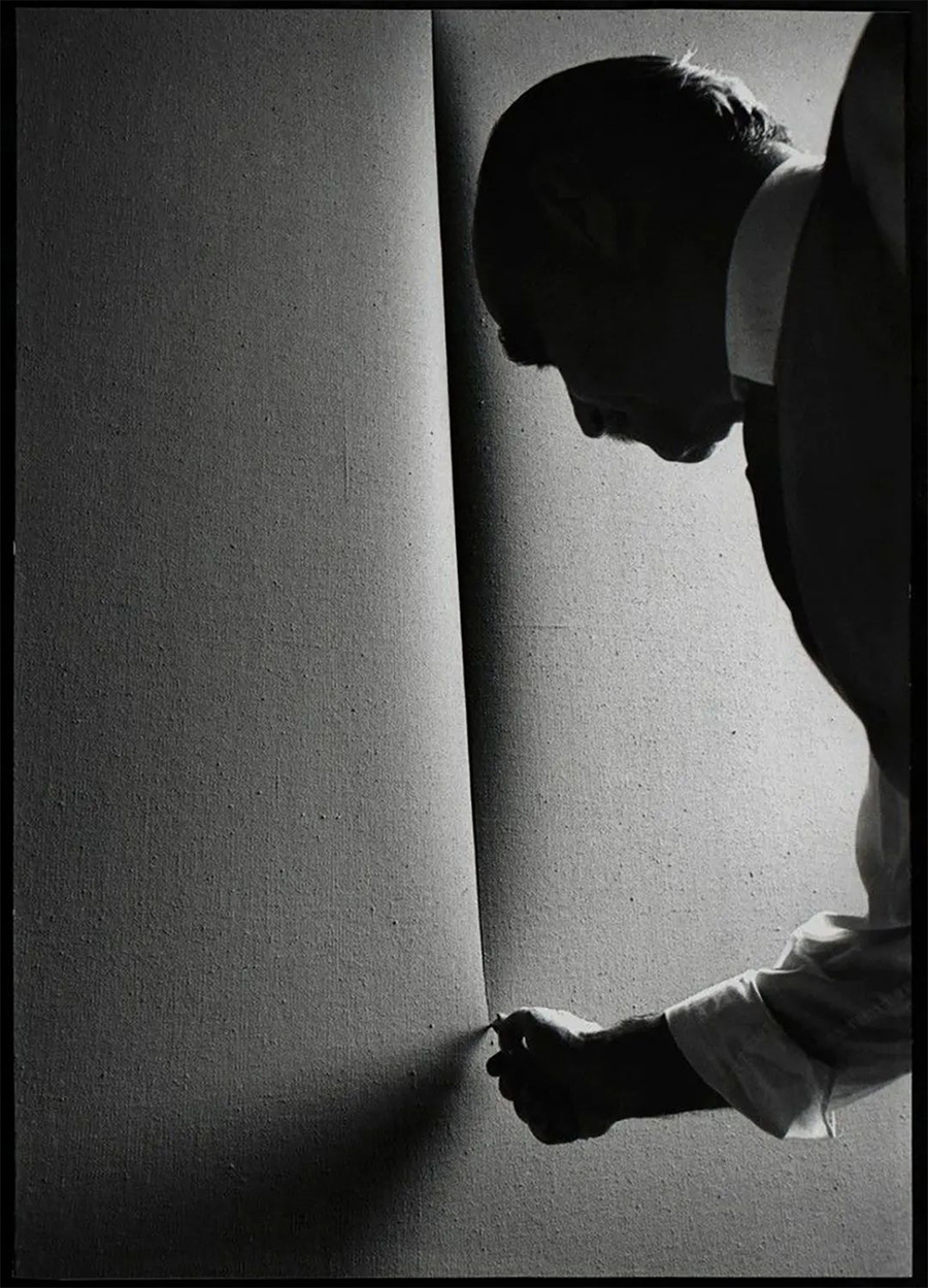 丰塔纳(Lucio Fontana)是战后意大利杰出的前卫艺术家,空间主义的创始人,他曾言“我不想画画。我想打开空间……在宇宙中创造一个新的维度纽带,因为它不断地扩展到图片的限制平面之外。”他打破了绘画与雕塑的界限,尝试构建新的空间维度。