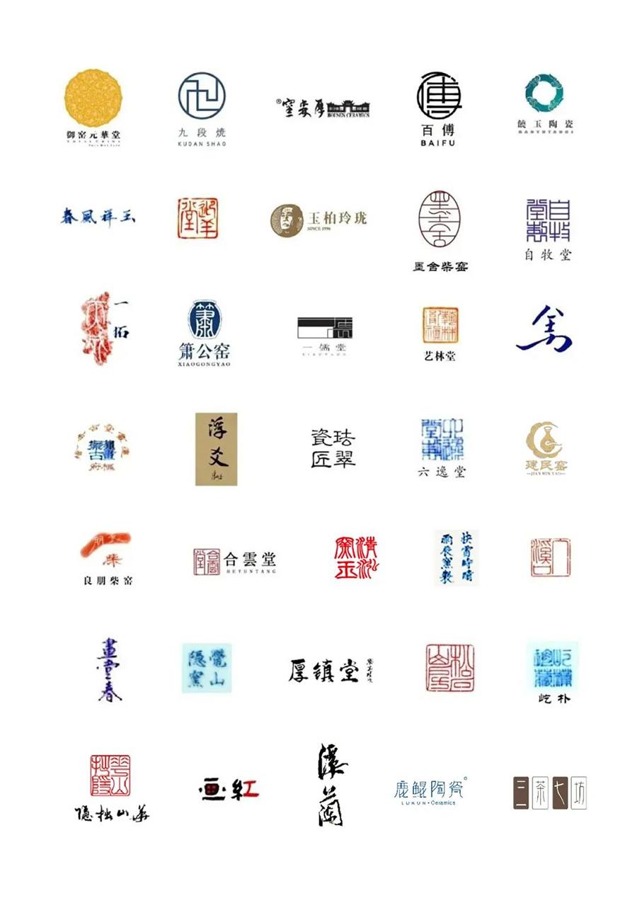 御窑元华堂、九段烧、迎祥堂、厚森窑、百年傅氏、春风祥玉、饶玉、玉柏玲珑、墨舍柴窑、画红、入溪口、自牧堂、一拓天成、六逸堂、一儒堂、艺林堂、觉山隐窑、屹朴堂、建民窑、溪兰仰元、华山拙隐、全力窑、箫公窑、鹿鲲陶瓷、三茶七坊、珐翠瓷匠、画堂春、莲画堂、良朋柴窑、松山石房、厚镇堂、浮爻、清泓窑玉、快雪时晴、合雲堂等