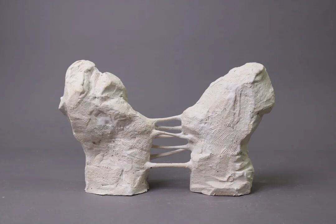 "Pull" is a three-dimensional representation of the phenomenon of moving in a certain direction after exerting force on an object through clay as a medium and shows the tension and tightness between two objects.