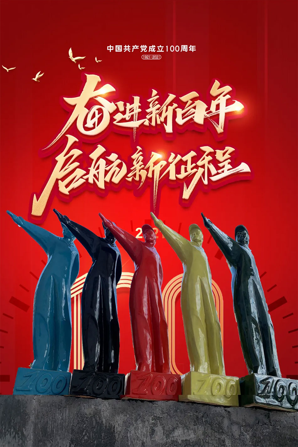 作品《百发百中》,通过运用极具中国文化特色的岭南陶塑艺术、简约而当代的国际艺术表现语言、形式和手法,塑造获得中国奥运首金手枪射击运动员英姿,并在底座刻上100数字,象征枪法如神百发百中,也是向建党100周年致敬!